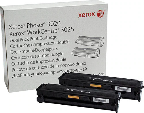 Bu, Xerox Phaser 3020 Yazıcı ve WorkCentre 3025 Çok Fonksiyonlu Yazıcı ile uyumlu, iki adet siyah toner kartuşu içeren Orijinal Xerox paketidir.